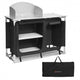 Detachable table legs give you two different heights. In addition you can easily adjust the height and balance of the table by rotating the knobs at the bottom of the table legs. The triangular structure and reinforcement measure greatly improve the stability and load-bearing capacity of the table. More importantly this outdoor folding table has a large storage area. When you have finished assembling the table you can put food drinks or utensils into the locker.