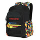 Travel with all your gear using the Heelys Thrasher Multi Color Geo Backpack. This backpack is made from durable poly, and features exterior skateboard straps that can secure a skateboard or even just your jacket right to the front of your backpack. A main zippered compartment fits textbooks, folders, and includes a divider pocket, while a second large zippered compartment can fit notebooks and has an organizer panel for pens and other accessories. There"s even a special side zippered compartment for your Heelys Wheels and another side zippered pocket for other must haves. For comfort, the bag includes padded yoke-style shoulder straps and a compression molded Air Tread back panel.